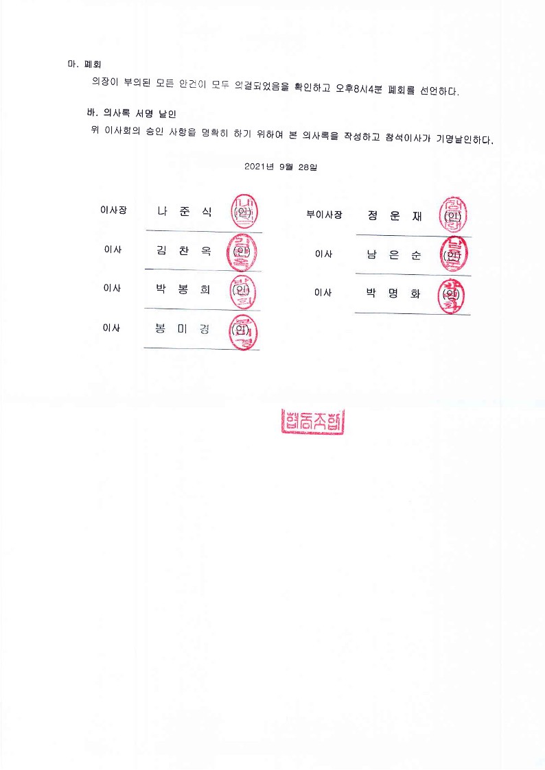 [2021-09] 정기이사회 결과보고 상세내용
