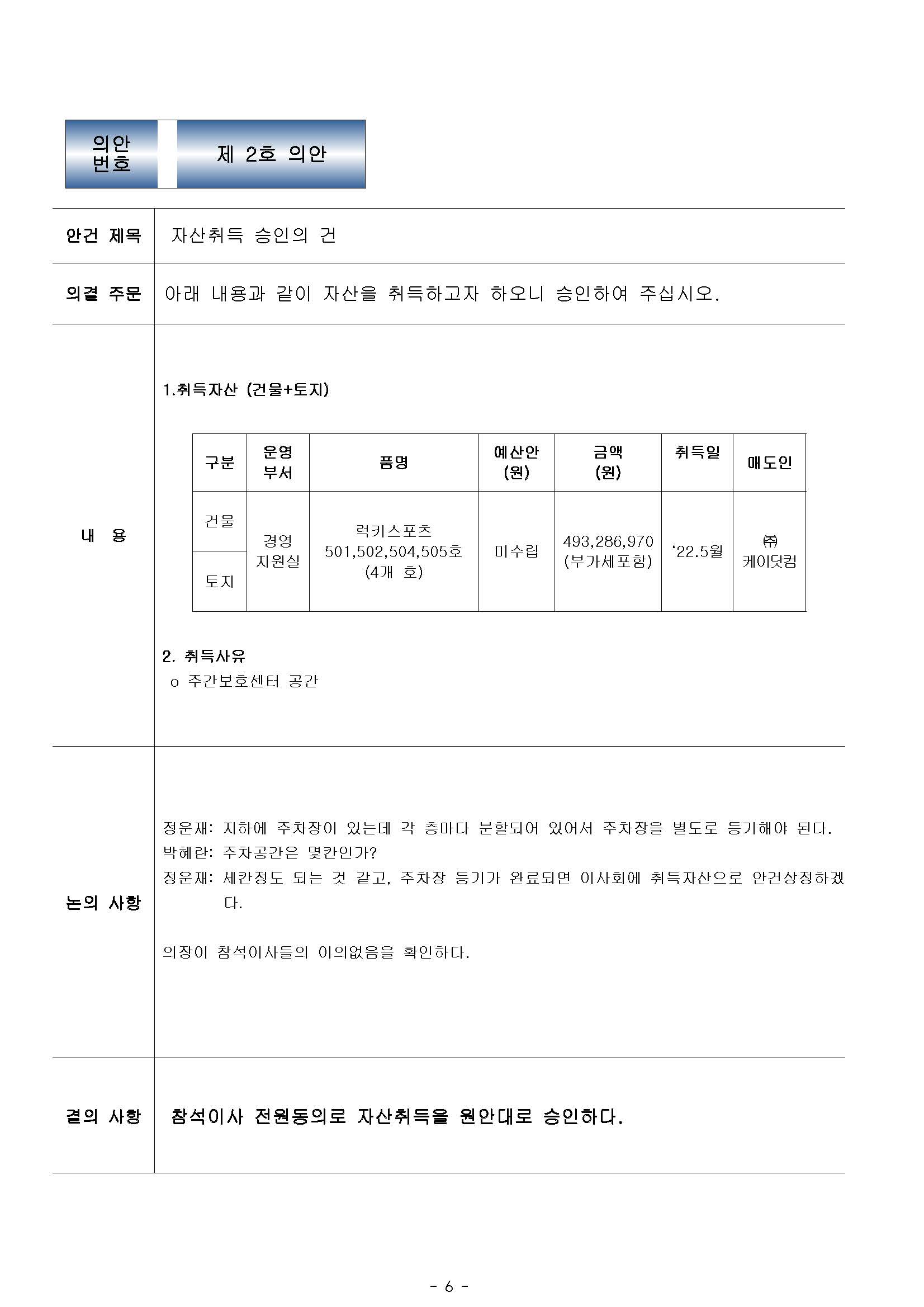 [2022-06] 정기이사회 결과보고 상세내용