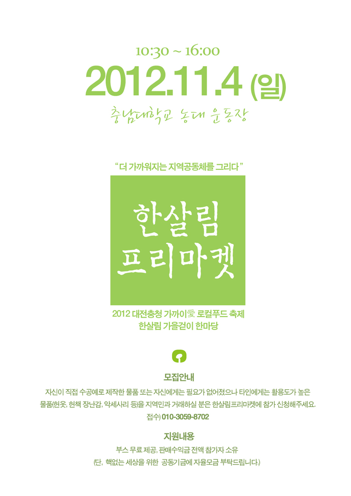 한살림대전충청 가을걷이 한마당! 로컬푸드 축제에 초대합니다^^ 상세내용