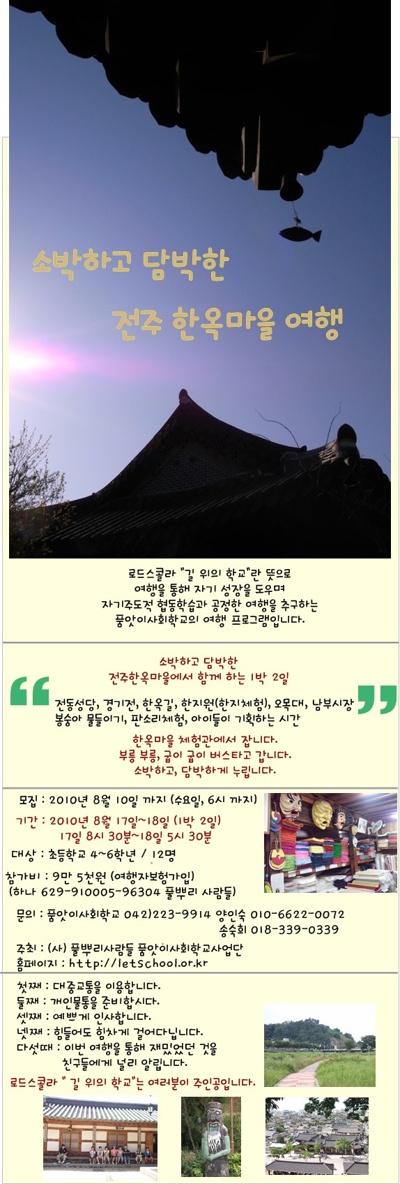 (품앗이사회학교) 전주한옥마을여행 1박 2일 상세내용