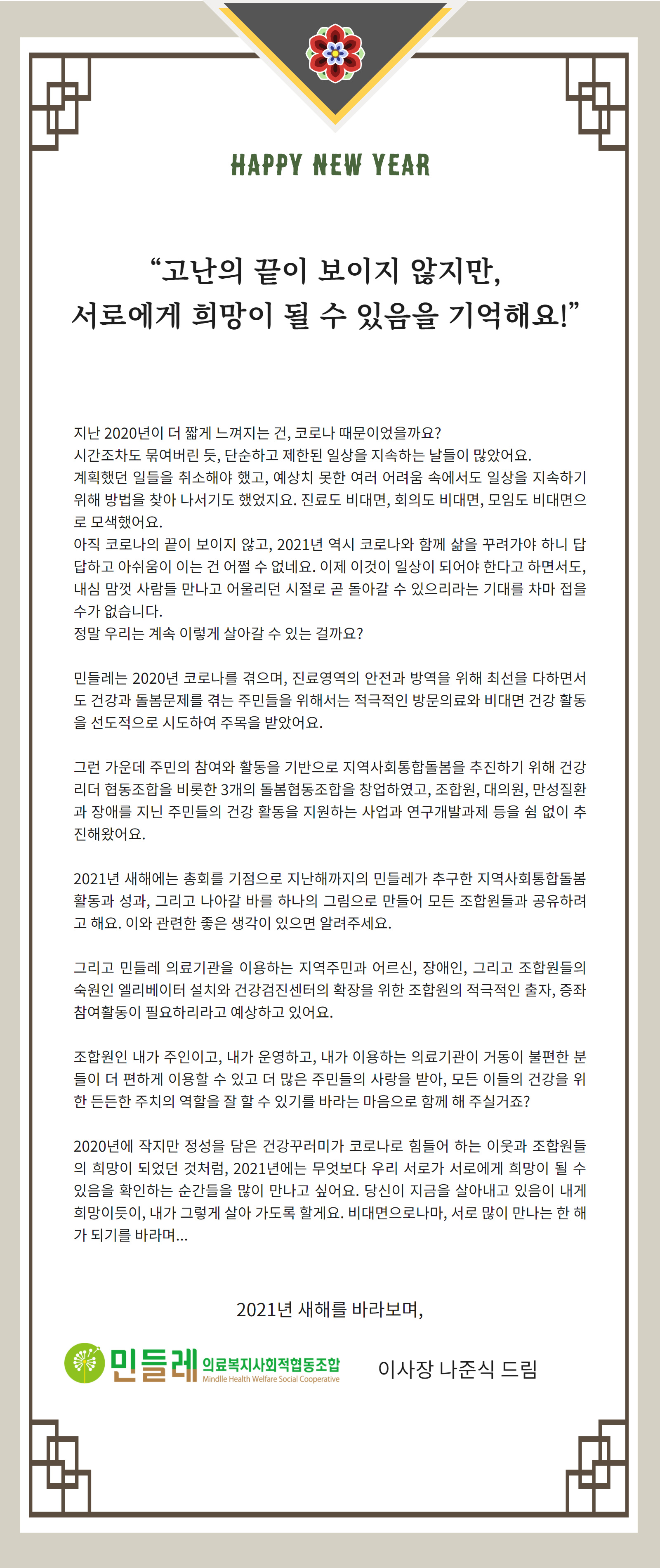 [이사장 새해인사] 서로에게 희망이 될수있음을 기억해요
