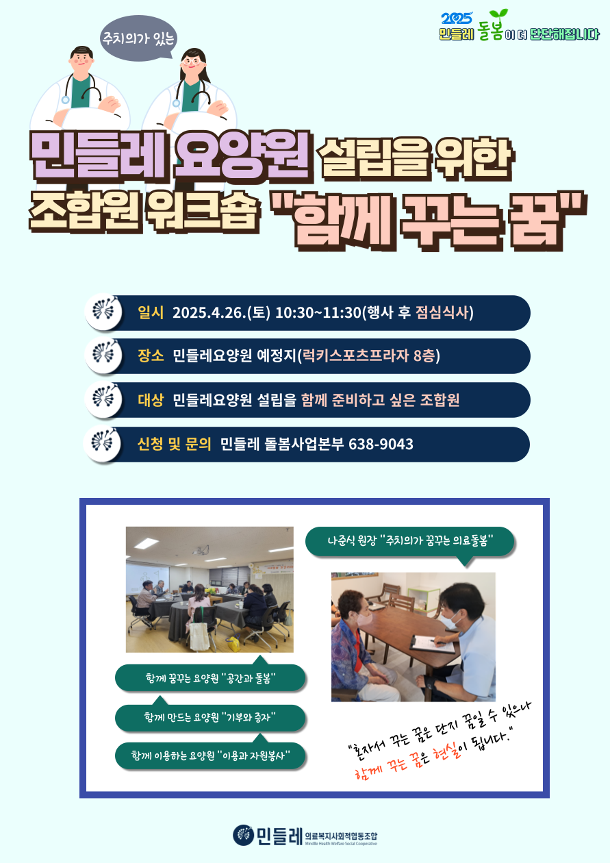 <민들레 요양원 설립을 위한 조합원 워크숍에 초대합니다>