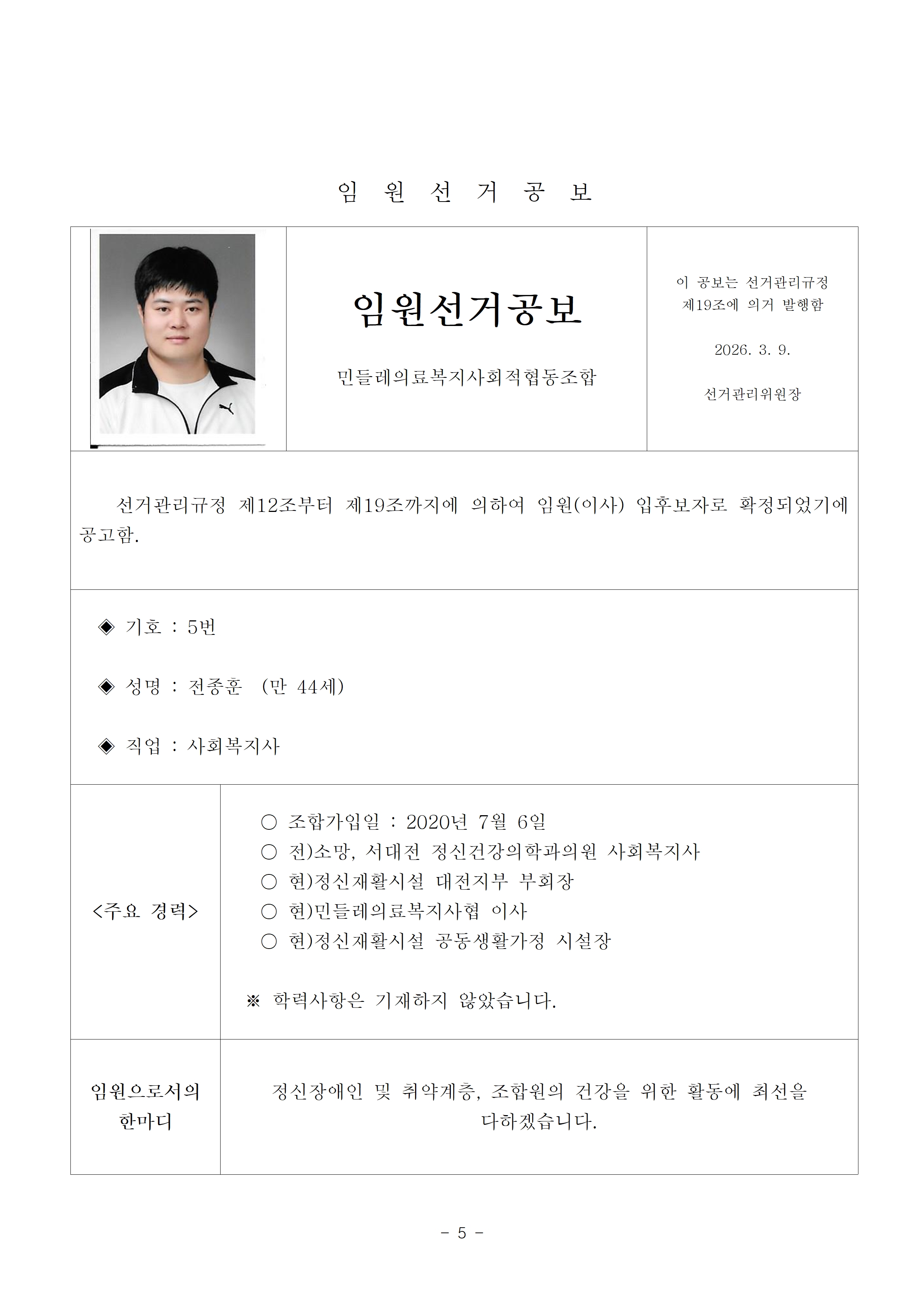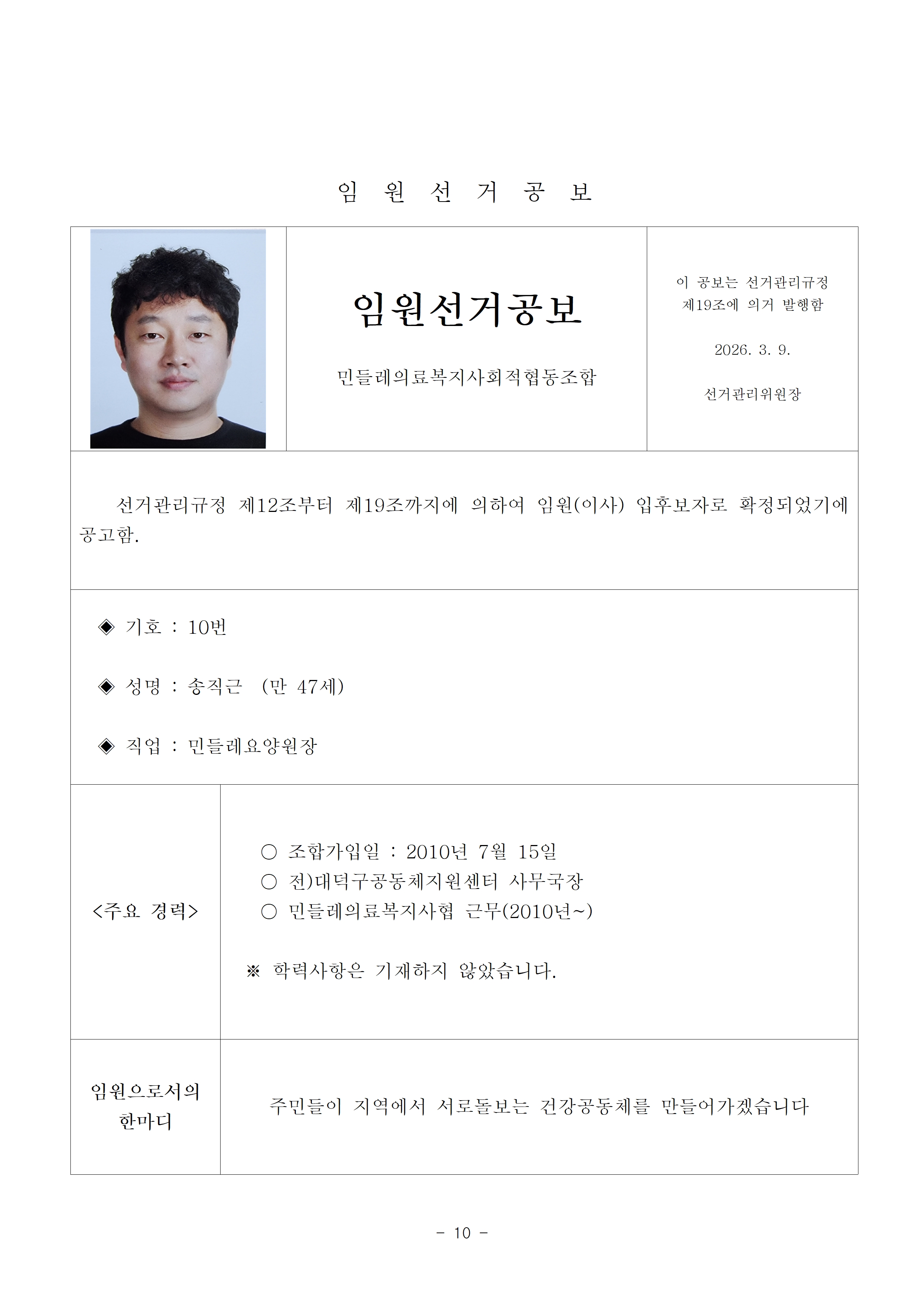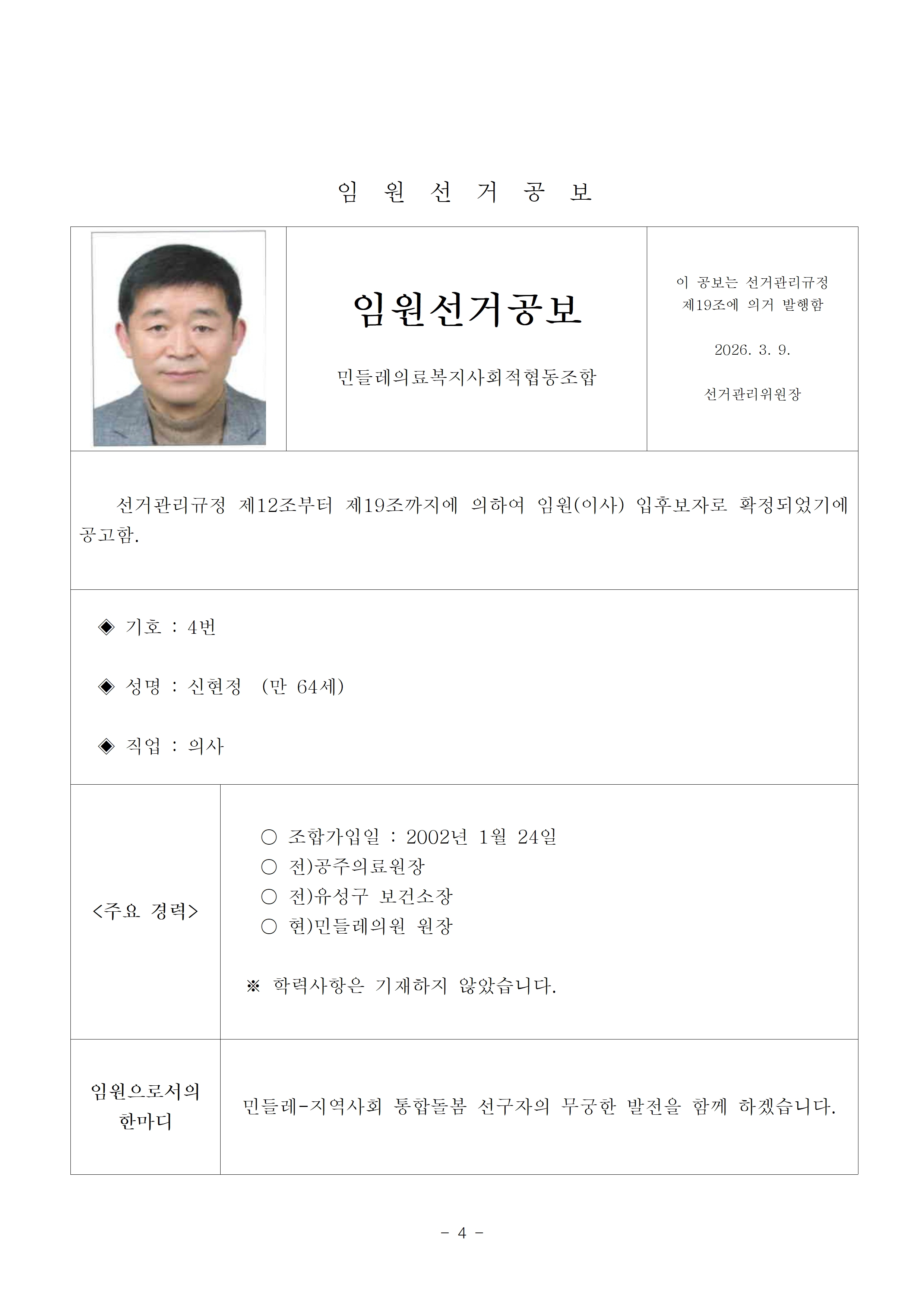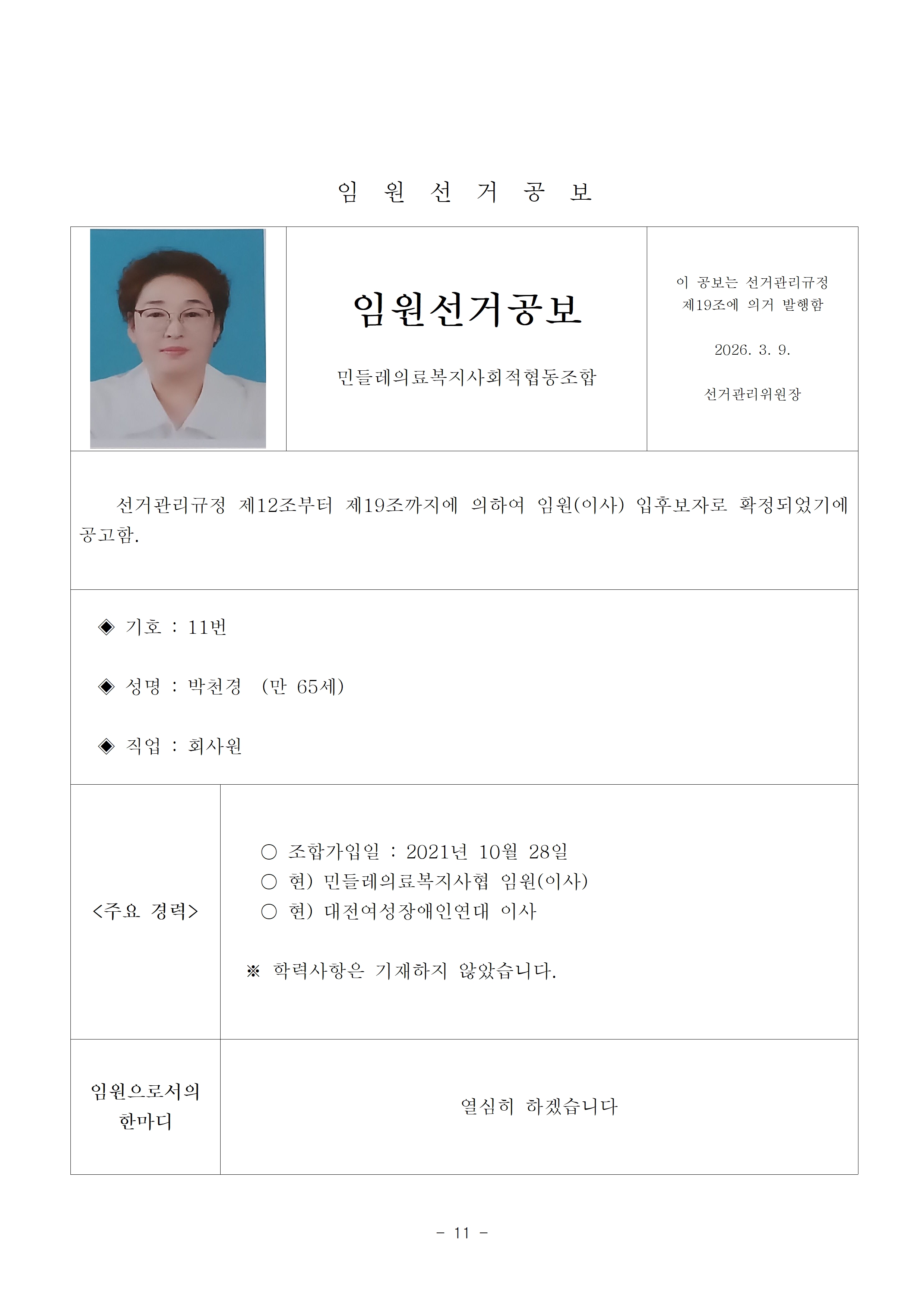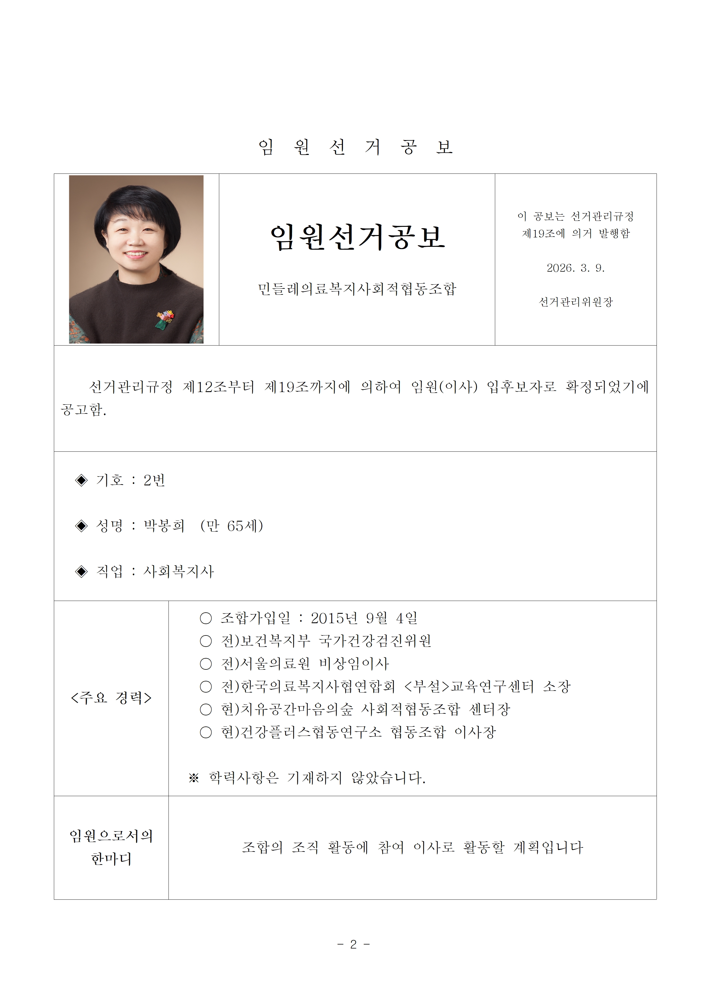 2026년 13기 임원(이사, 감사)선거 공보 상세내용