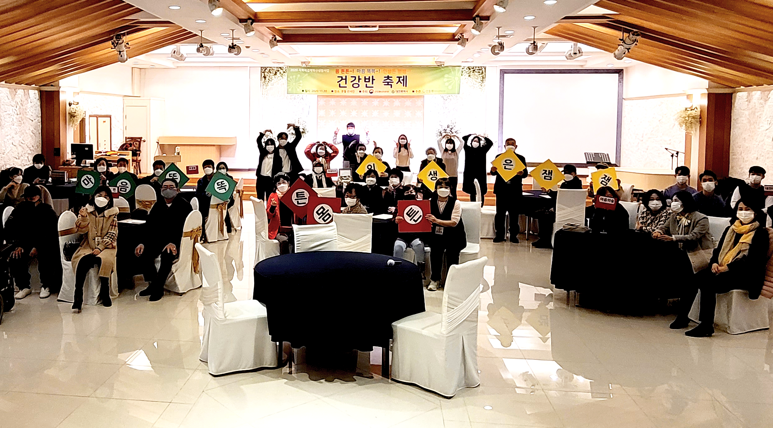 지난 11월 20일, 선샤인 호텔에서 건강증진 활동을 공유하고 축하하는 ‘건강반 축제’가 열렸습니다. 지난 7월부터 11월까지 5개월 동안 만성질환을 앓고 계신 65세 이상 어르신들이 ‘마음 똑똑! 몸 튼튼! 인생은 잼잼!’ 건강반 활동을 하면서 코로나19사태를 이겨내었습니다.