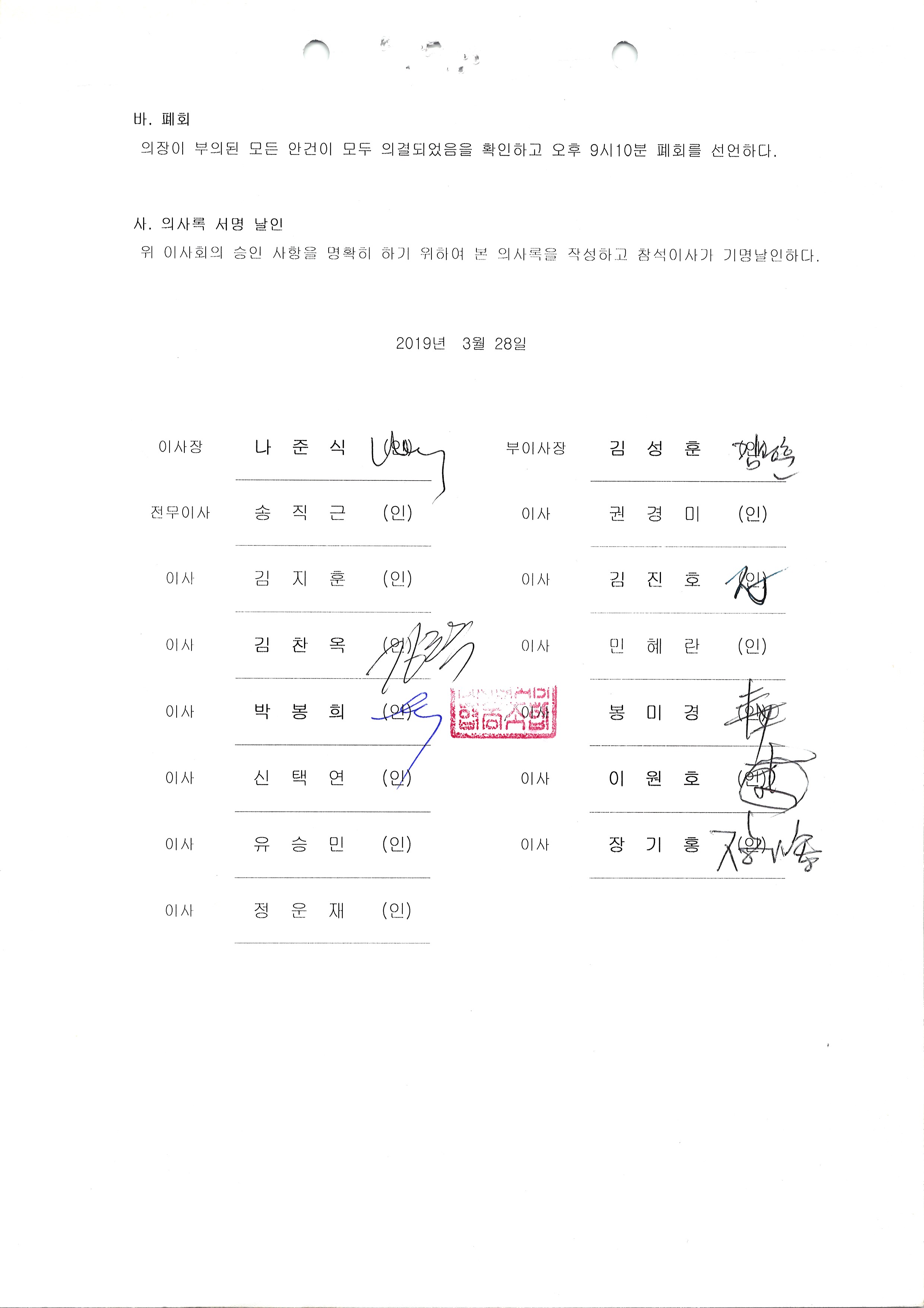 [2019-03] 정기이사회 결과보고