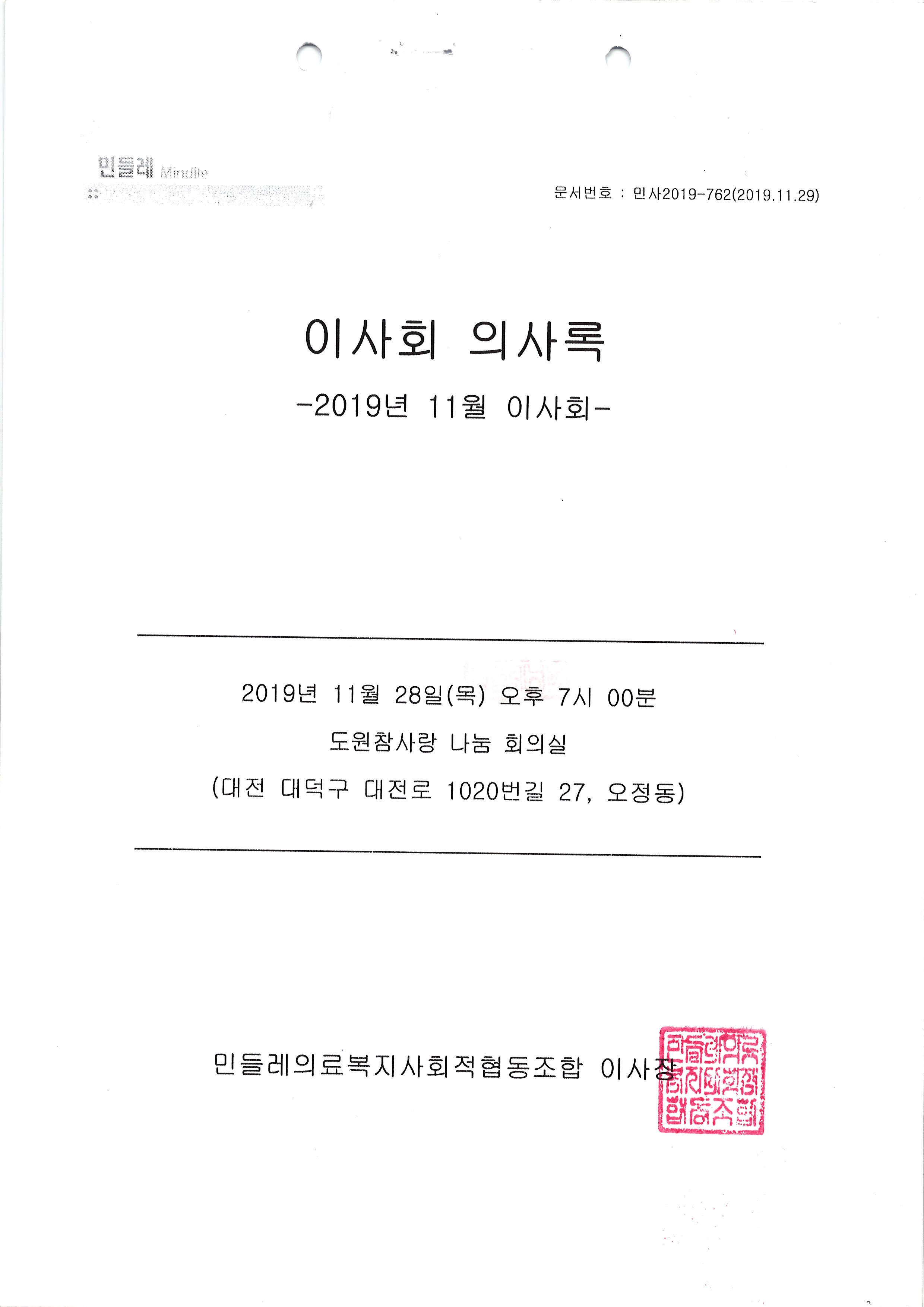 [2019-11] 임시이사회 결과보고