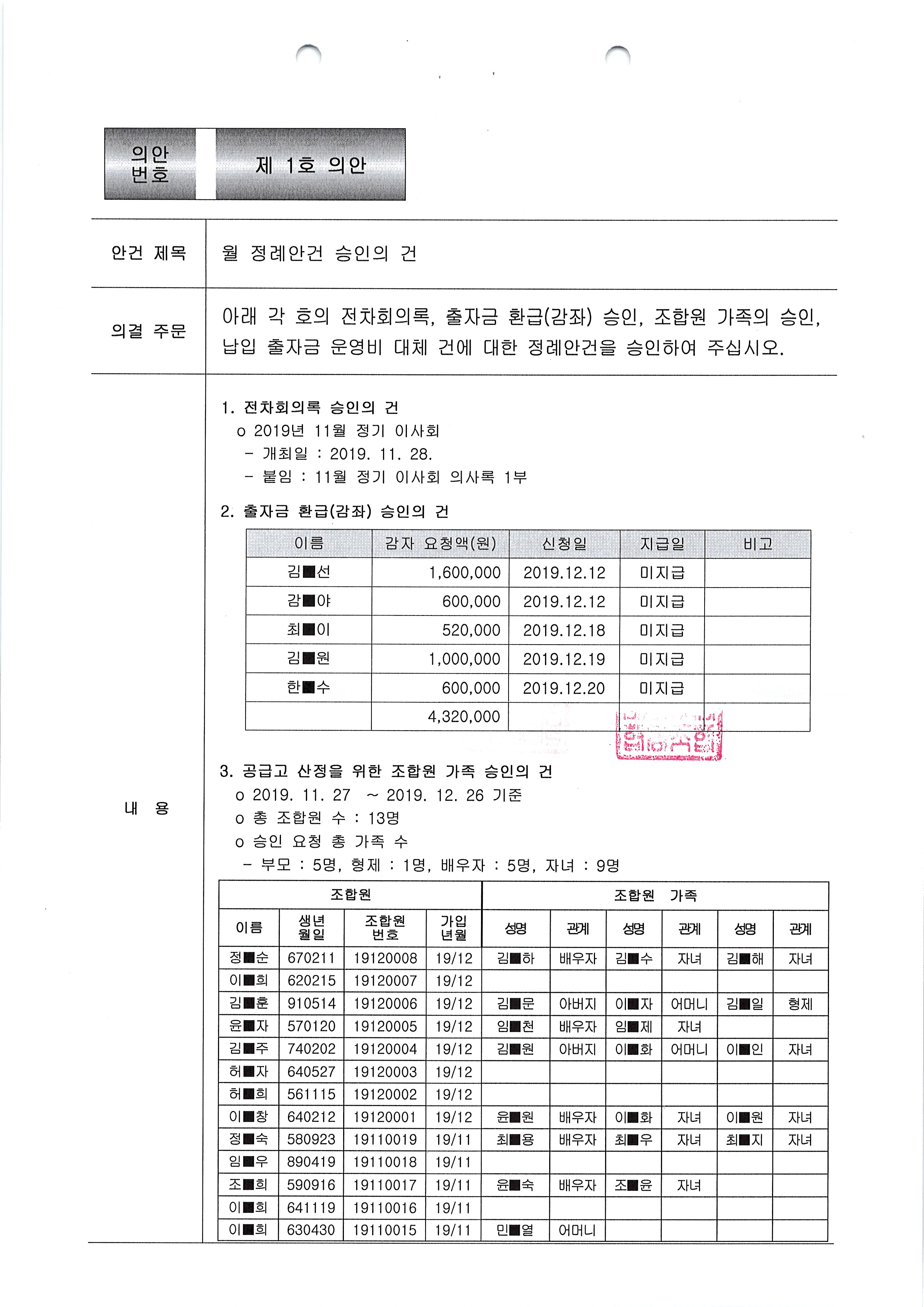 [2019-11] 임시이사회 결과보고