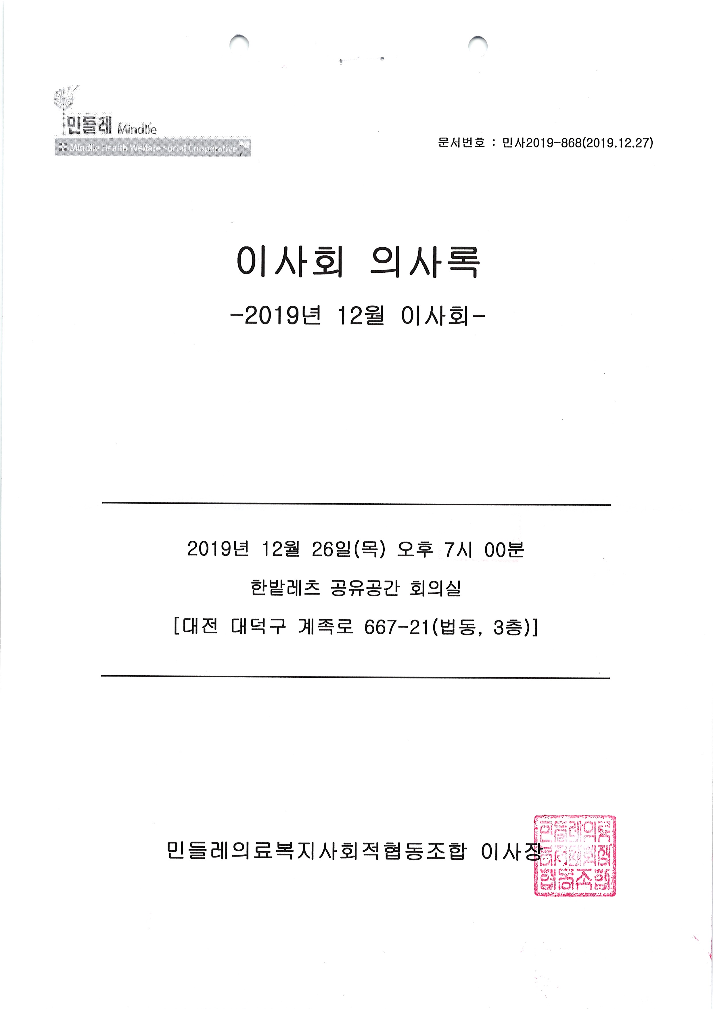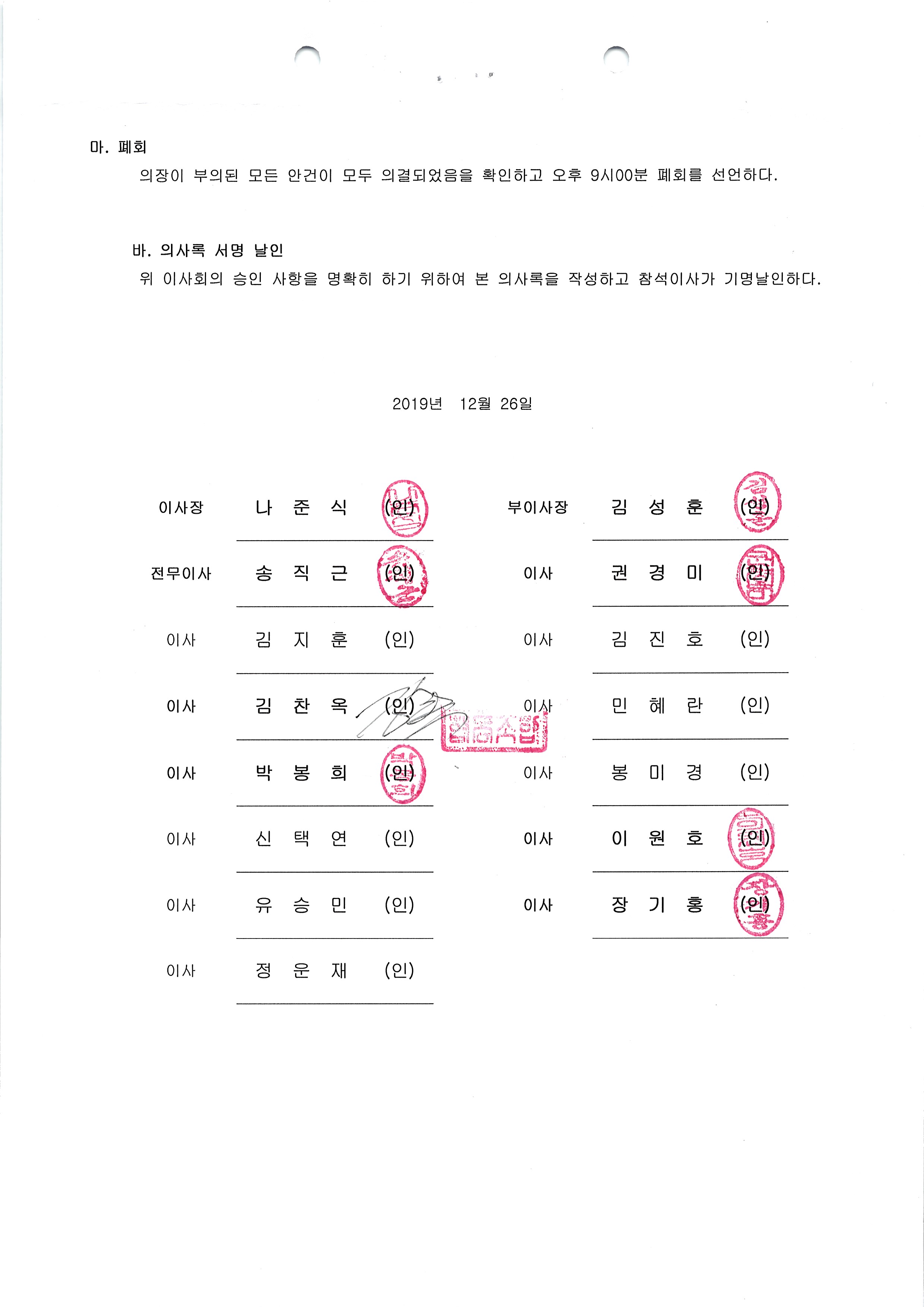 [2019-12] 정기이사회 결과보고