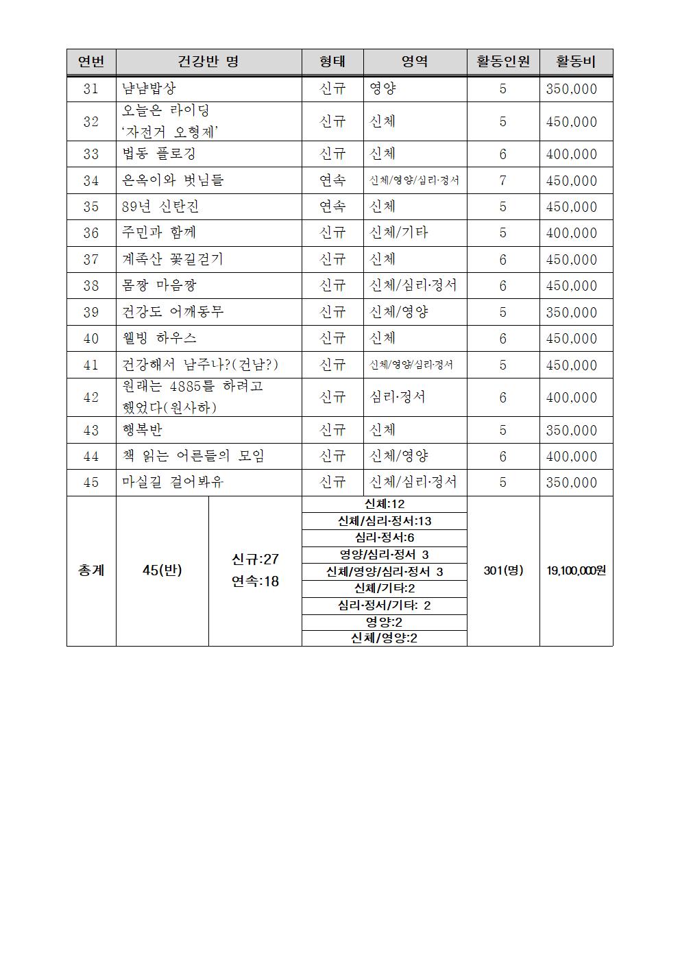 2021년 민들레의료복지사회적협동조합의 '건강반' 활동에 보여 주신 관심과 성원에 감사 드리며 선정된 '건강반'을