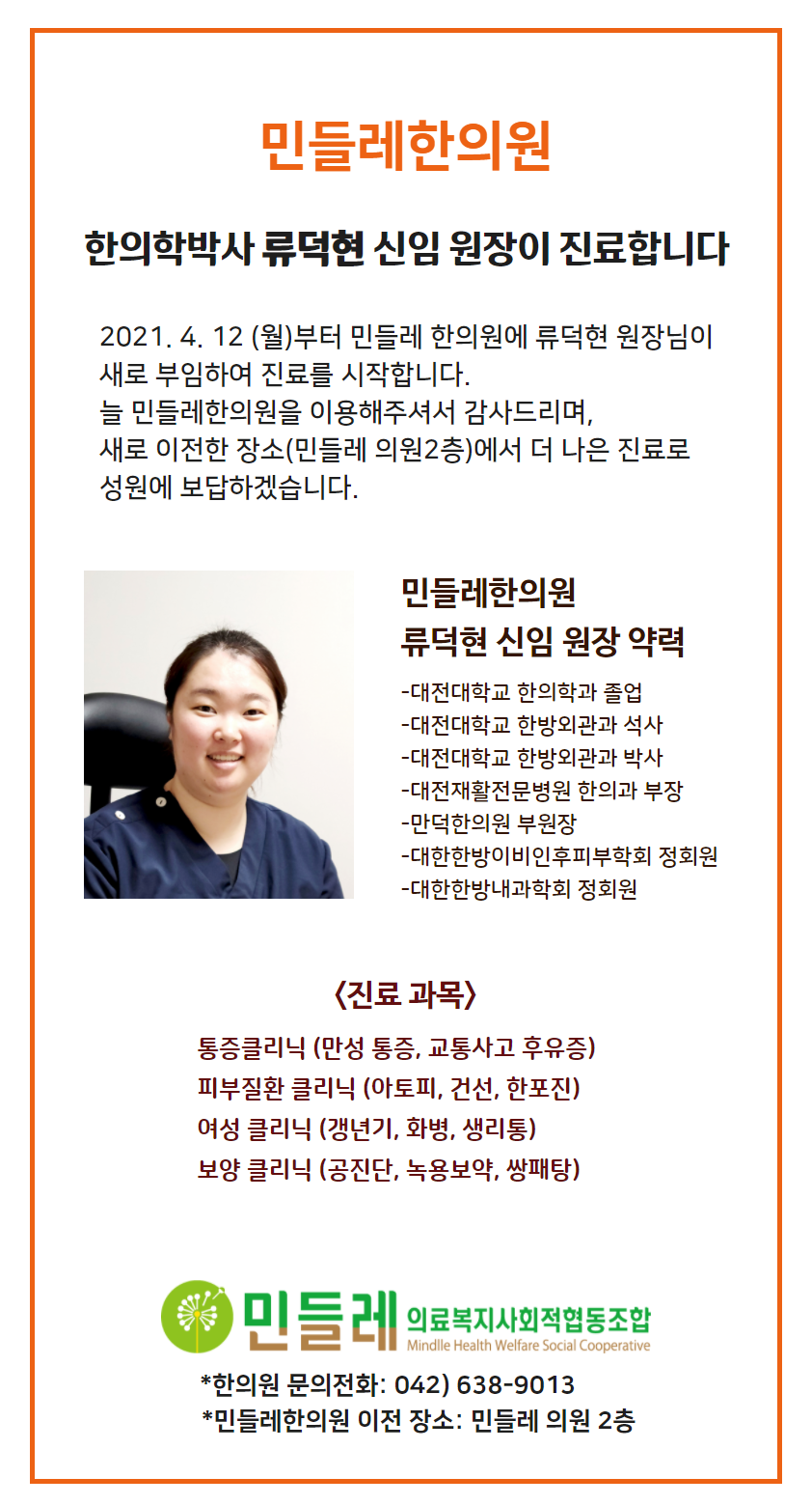 민들레한의원 류덕현 신임 원장이 진료합니다.