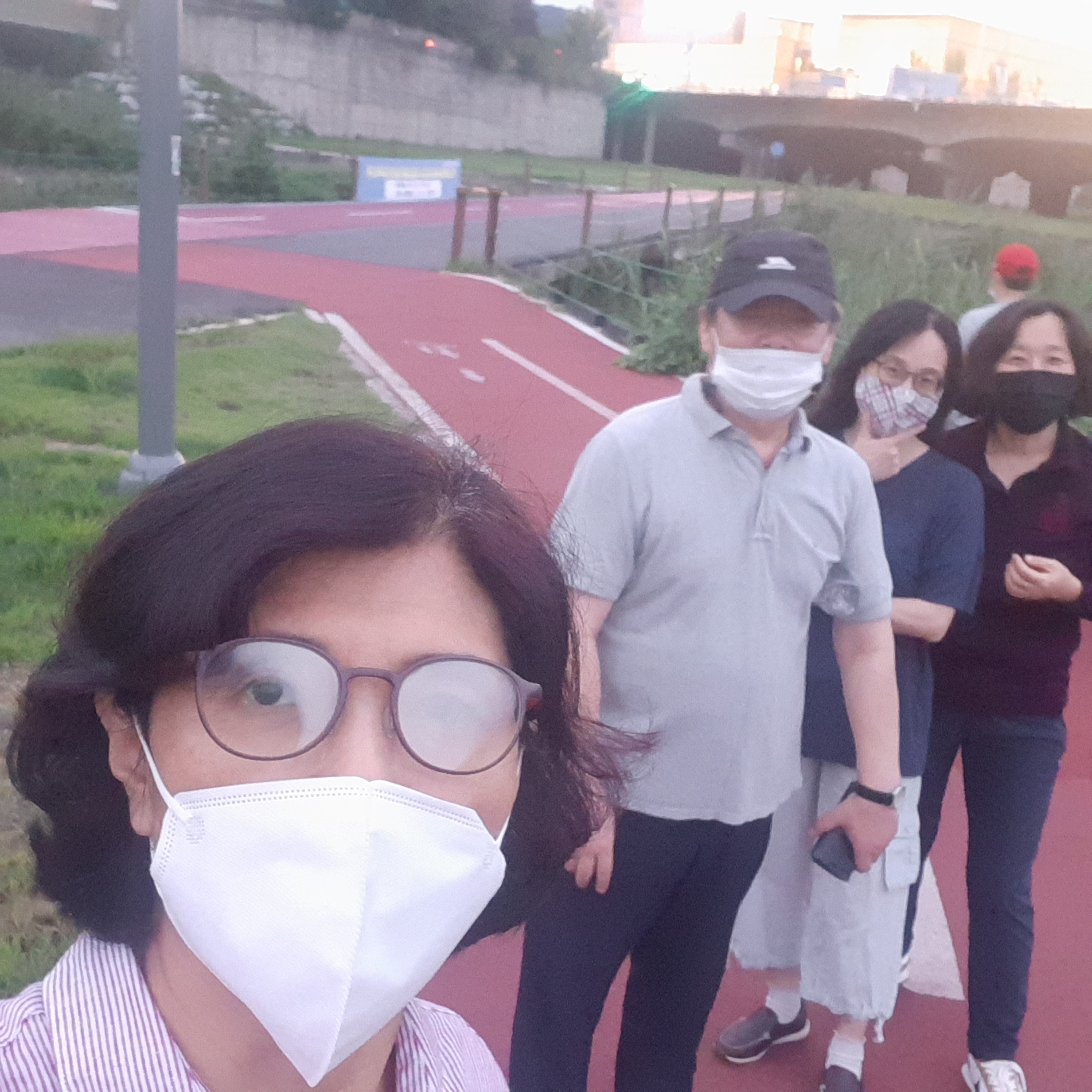 계속 내리던 비가 그쳐서 저녁 6시 30분에 만나서 갑천을 2시간 걷고 9월 건강반 운영에 대한 논의함.