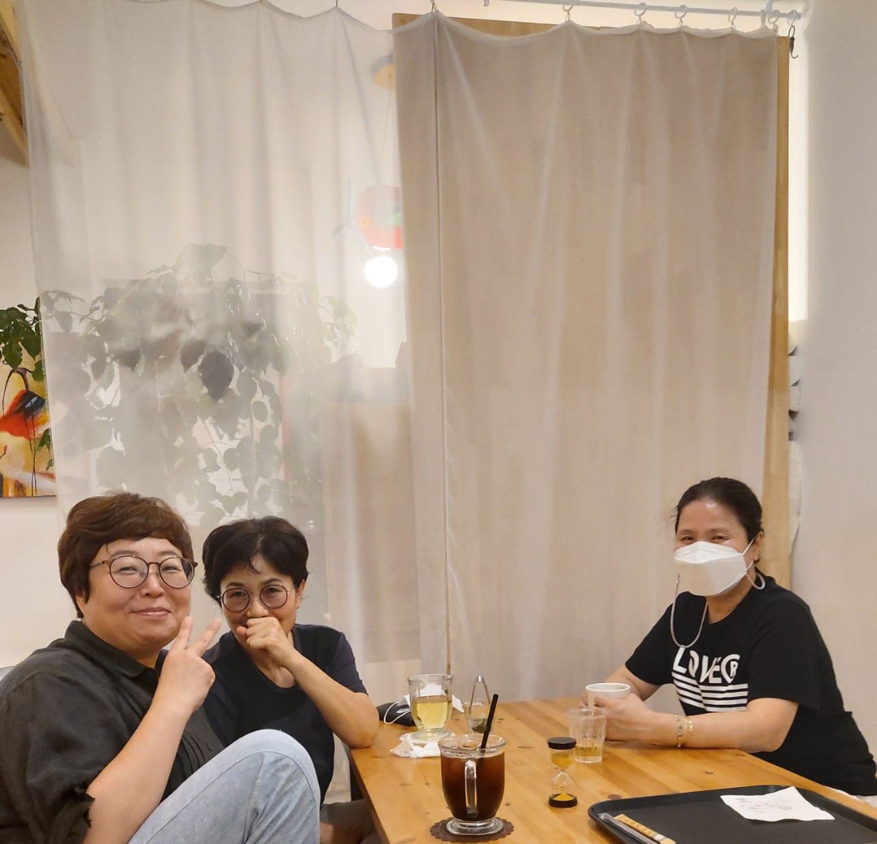 코로나로 인해 다 모이진 못했지만 오랜만에 도서관 봉사하고 차마시며 이야기도 하고...