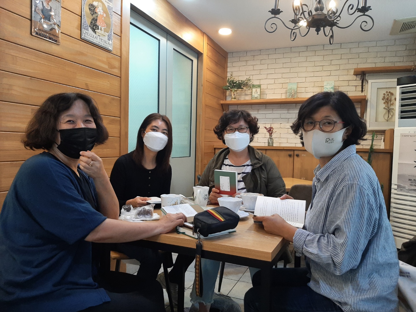 건강활동하는 날로 약속을 잡았는데 비가와서 독서 모임을 함. 각자 읽은 책을 가져와서 책 내용을 공유하며 성찰하면서 정신적 건강활동을 함.