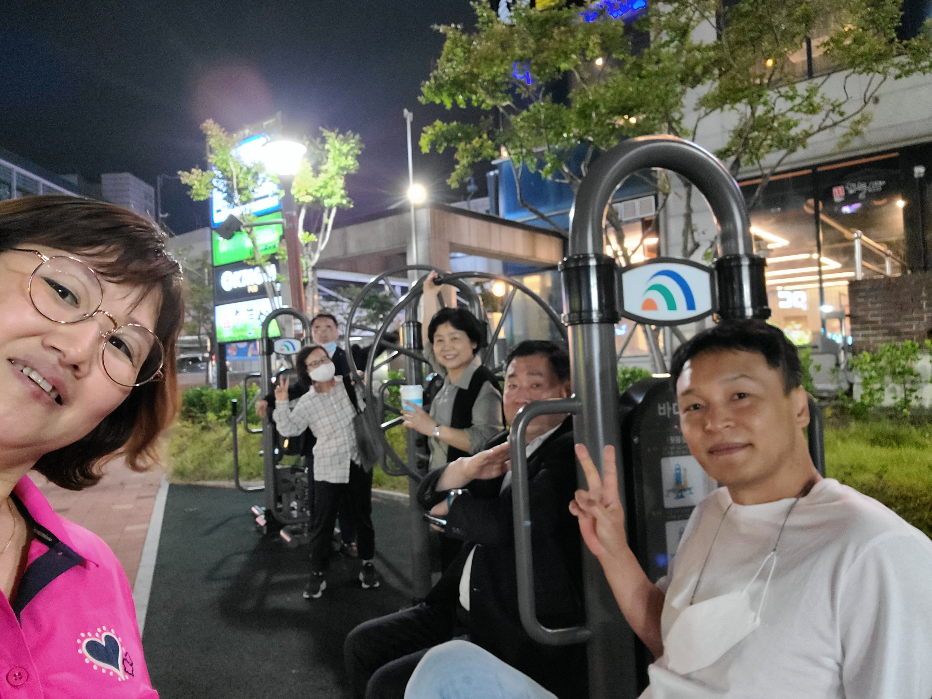 주민과함께 건강반이 주민자치 건강분과위원으로 된 모임으로 우리의 건강을 위해서 우리의 건강도 잘챙기자는 말씀들이 있어서 식사후 공원에서 운동기구를 사용해 격렬하고 건강한 운동을 함