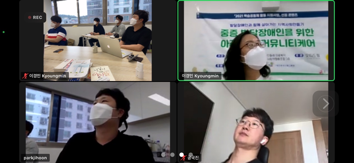 박지훈, 공국진, 김준섭, 위성은, 안동진, 함보현, 임은정, 이기업, 이경민, 장영호 (10명) -발달장애를 바라보는 두 가지 관점: 의학적 모델과 당사자 중심주의 강의 (임은정) -사례 회의 -------------------------- 사례 회의 및 공부 월 2회 외에 방문 활동 -5월 1일: 이헌주, 김준섭, 위성은 -5월 3일: 김준섭, 위성은 -5월 8일: 박지훈, 안동진, 김후연(신규) -5월 16일: 이헌주, 안동진, 위성은 -5월 22일: 장영호, 김준섭, 위성은