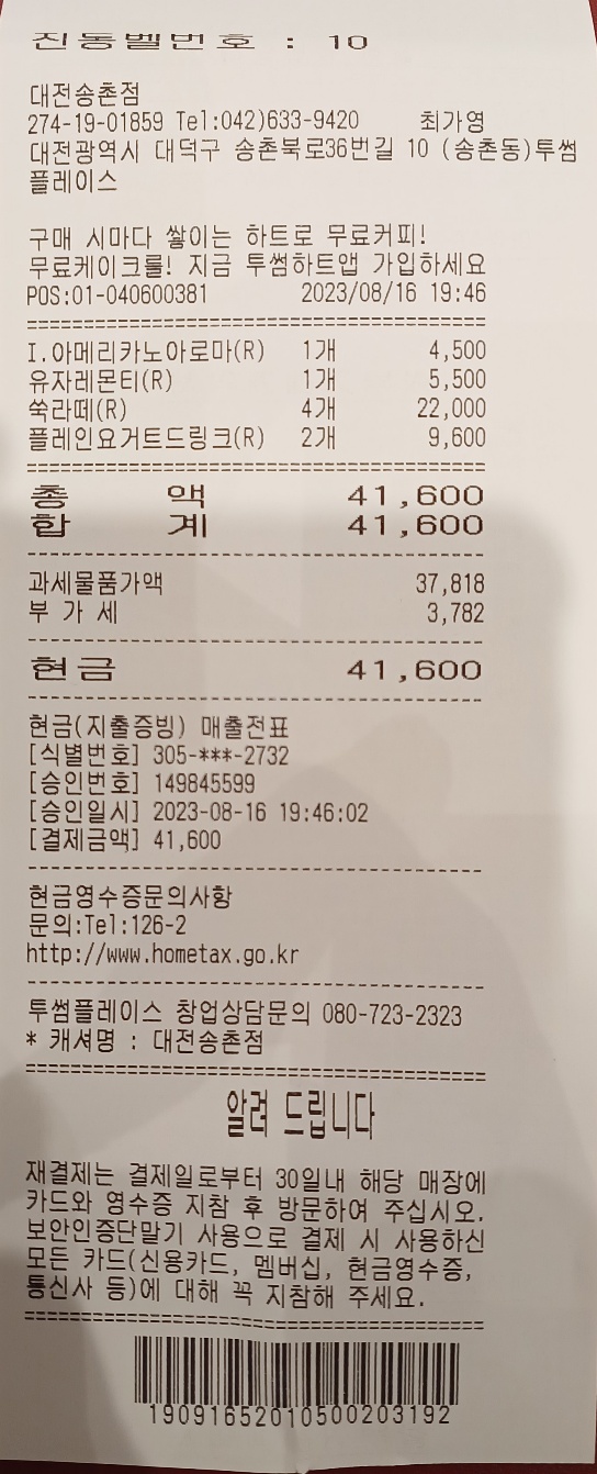 투썸플레이즈/ 2023년 08월 16일/41,600원